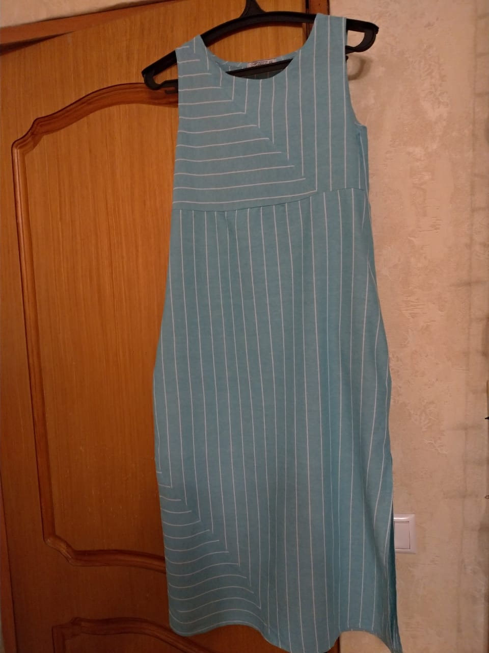 Классный льняной сарафан ! Тоненький тоненький! Но не просвечивает, за счет полосок ничего не видно, 54 размер подошел отлично, не тянется. Цвет соответсвует.