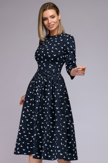 Темно-синее платье с принтом "кошки" 1001 DRESS